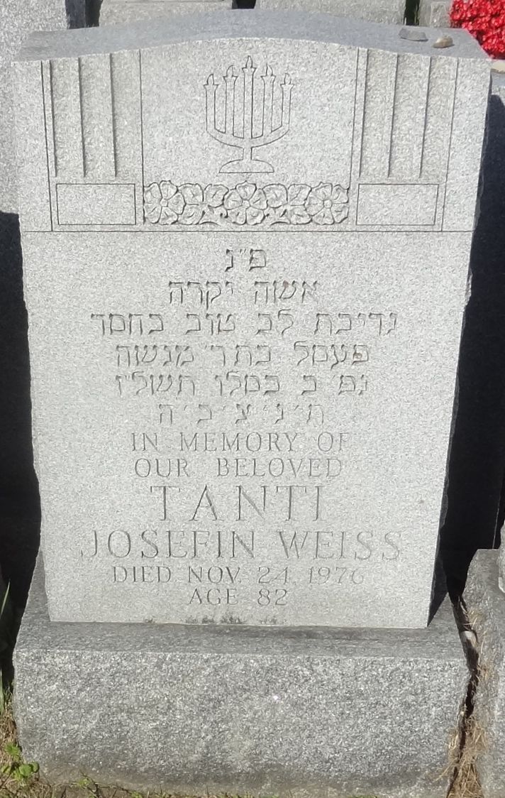 | Source | GenealogieQuebec.com Deaths for Josephine WEISZ for birth 1894-11-23, death, parents, spouse WEISZ, status widow |