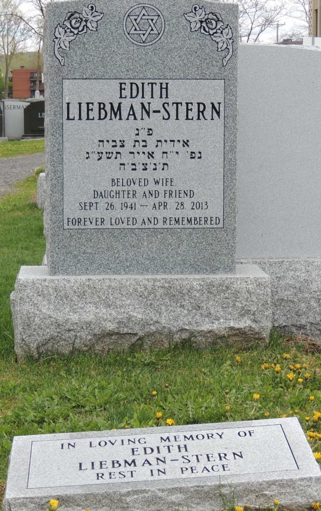 LIEBMAN-STERN, Edith (nee Slutsken) On Sunday, April 28, 2013. Beloved wife of Michael Stern. Dear daughter of the late Dorothy Druker. Edith will be sadly missed by her cousins, family, friends and all who knew her. Special thanks, for their valiant efforts, to the doctors, nurses and staff of the Jewish General Hospital. Funeral service from Paperman and Sons, 3888 Jean Talon St. W., on Wednesday, May 1 at 11:00 a.m. Burial at the Baron de Hirsch Cemetery, de la Savane. Donations in her memory may be made to the Israel Cancer Research Fund, (514) 481-2723. |