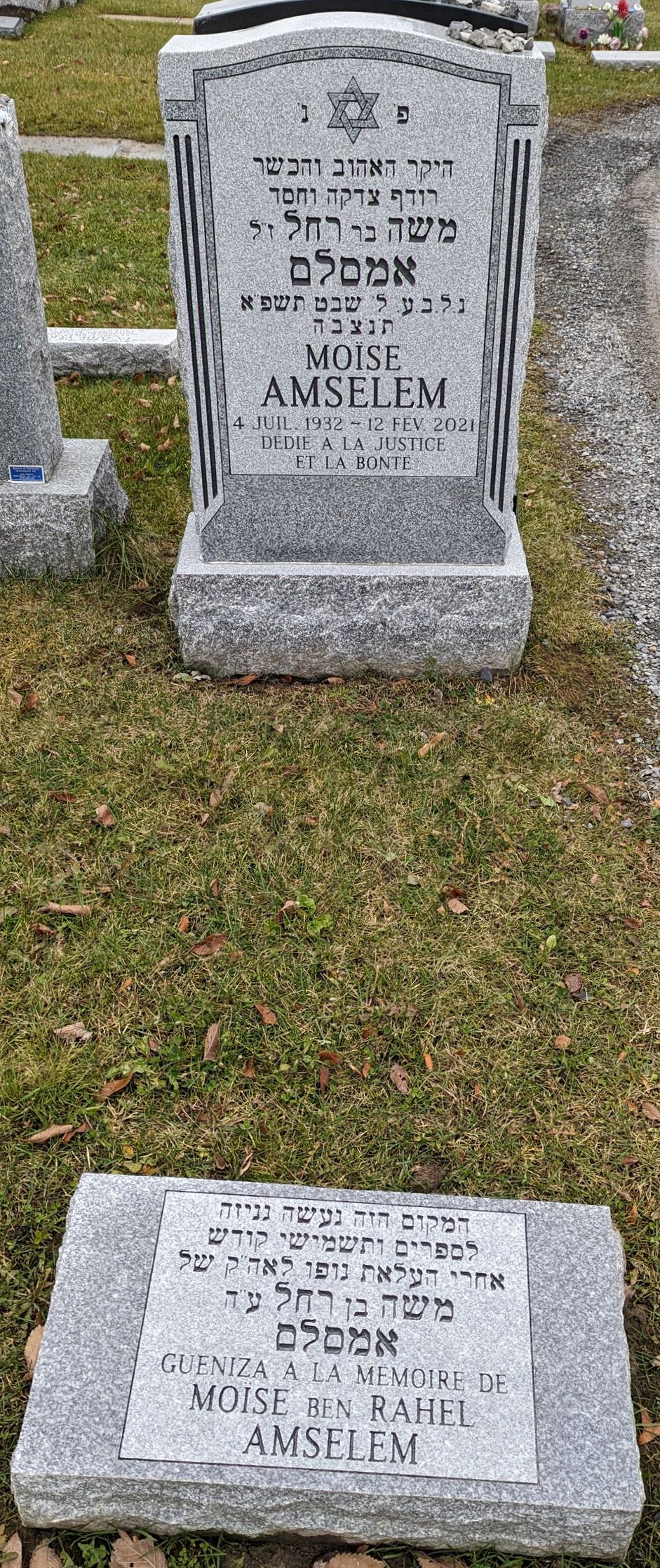 On Friday, February 12, 2021. Beloved husband of Gladys Myriam Bouhadana. Loving father and father-in-law of Arié Yaacov and Sandra Amselem, Joelle Rachel Amselem and Robert Abitbol, Dan Messod and Galit Amselem, Yosef David Amselem of Israel. Dear brother and brother-in-law of Mercedes and the late Jacob Serruya, Mair and Mimi Amselem, Rabbi Amram and Rachel Amselem, Simona and the late Edmundo Felici, Samy and Martine Amselem; brother-in-law of Claude and Edith Bouhadana, Georges and Françoise Bouhadana, Maurice and Esther Bouhadana, Paul Bouhadana. Cherished grandfather of Myriam Amselem and Stephane Benalal, Sarah Amselem and David Mimoun, Moïse Amselem, Léa Amselem, and Naomi Amselem; Eden, Anaël, Aurely, and Emanuelle Abitbol; Moshe Amselem and fiancée Alexia Obadia, Esther Amselem and fiancé Benjamin Sabbah, Noah, Yaacov, and Jonathan Amselem; Moshe Natan, Myriam Zohar, Yaacov Shalom, and Naomi Hanna Amselem. Proud great-grandfather of Gabriel Hai Mimoun. Private graveside service. Contributions in his memory may be made to Jewish Community Foundation, (514) 345-6414. |